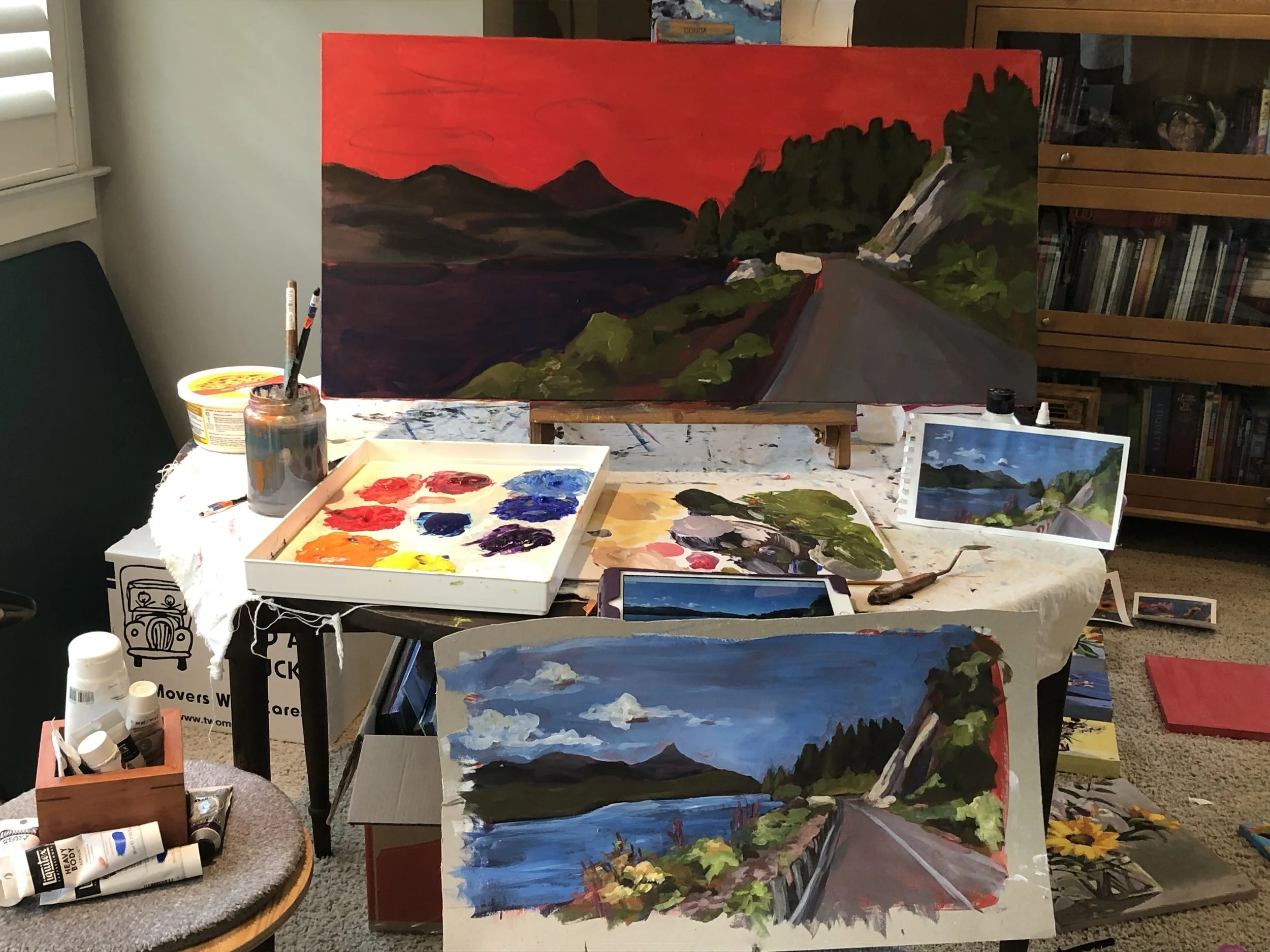 I primarily work in acrylic, painting on canvas, board and paper.